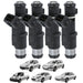 Producto incluido: 4 x inyector de combustible; material: metal y plástico; número de pin: 2; voltaje: CC 12 V; tipo de orificio: disco de 4 agujeros.