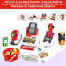 Accesorios: Canasto con frutas y verduras, billetes, monedas, caja de jugo, caja de leche, tarjeta de pago y más.
