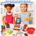 Favorece el desarrollo de habilidades matemáticas y cognitivas al jugar con billetes, monedas y productos de imitación.