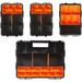 El juego incluye 4 cajas de herramientas: 1 organizador de compartimentos de 11.4 x 8.7 x 2.4 in, 1 unidad: organizadores de compartimiento de 8.7 x 6.1 x 4.7 in, 2 piezas: 8.7 x 6.1 x 2.4 in
