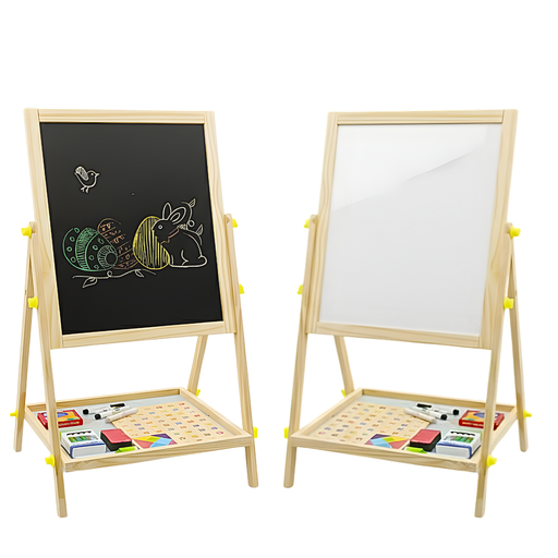 Pizarra Doble Uso Infantil Atril Madera Acrílica Y Tiza Beige
