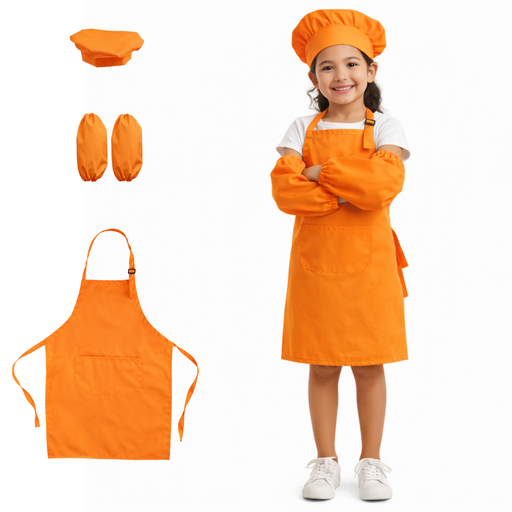 Set Delantales Cocina Infantil Gorro Mangas Protectores Chef Naranja Talla Unica