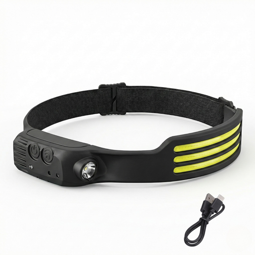 - Linterna Recargable Cabeza Led 3 Tiras Con Sensor Usb Tipo C Blanco Led Negro (1)