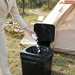 -Se deposita el líquido (orina o desechos líquidos) en el inodoro portátil con bolsa sanitaria