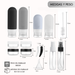 - Nuestro paquete de 17 botellas de viaje reutilizables incluye 1 bolsa impermeable, 2 botellas de silicona (90 ml), 2 botellas de silicona (60 ml), 2 botellas de spray (30 ml), 4 cajas de crema (10 ml), 1 embudo, etiquetas, cepillo. ¡Y 2 espátulas! Diferentes accesorios para sus diferentes necesidades