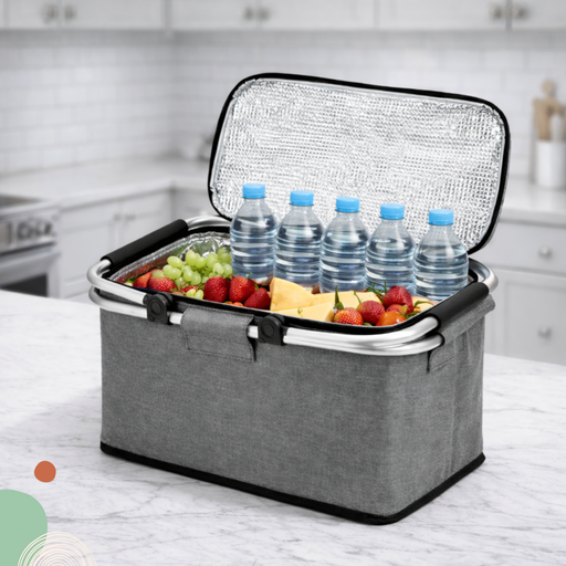 Canasto Picnic Cooler Bolso Térmico Plegable Portátil Gris