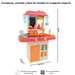 Juego de cocina para niños: es un juego de juguete de cocina para niños pequeños, niños, niños pequeños y niñas que da una sensación realista de un entorno de cocina. Viene con varios accesorios. Para hacer las cosas aún más divertidas, el juego de juguetes de cocina viene con un juego de regalo que incluye artículos de cocina de aspecto real. Juego de cocina realista para niños pequeños y niñas: es un juego de cocina realista de tamaño de 63X45.5X22 cm, para niños, niños pequeños y niñas. Incluye una estufa realista, una salida de agua, un tablero de menú, junto con verduras de juguete, frutas, utensilios y varios otros accesorios de cocina para jugar. Mini juego de cocina con accesorios: con 36 accesorios de cocina incluidos, es un juego divertido que imita una cocina de la vida real. Es un juego de cocina que incluye todos los artículos de cocina como escenarios de la vida real, haciendo que los juegos de fantasía de los niños sean aún más divertidos. Juegos de interior y juego interactivo: es un entretenido juego interior que mantendrá a tus hijos ocupados y entretenidos. Promueve la interacción entre padres e hijos, ayuda a los niños a identificar frutas y verduras, promueve la construcción de tallos, mejora la capacidad mental y mucho más. Tablero de menú, salida de agua y set de regalo: incluye un tablero de menú escrito a mano donde los niños y los padres pueden escribir mensajes y agregar elementos divertidos a su juego de fantasía.