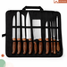 Descubre el Bolso Porta Cuchillos Gastronomía Profesional, diseñado para chefs y amantes de la cocina que buscan calidad y funcionalidad. Este set incluye un total de 9 cuchillos de carne, cada uno con una hoja fabricada en acero inoxidable, garantizando durabilidad y un corte preciso en cada uso.