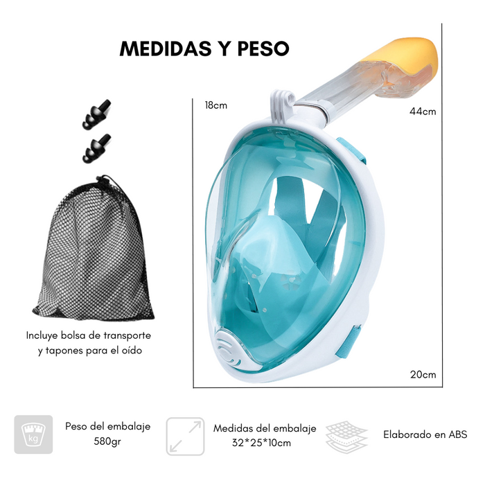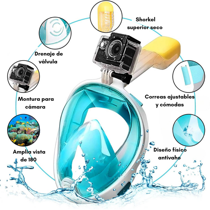 Máscara Full Face Antiniebla Buceo Snorkel Con Soporte Gopro