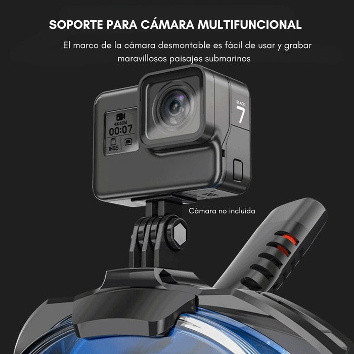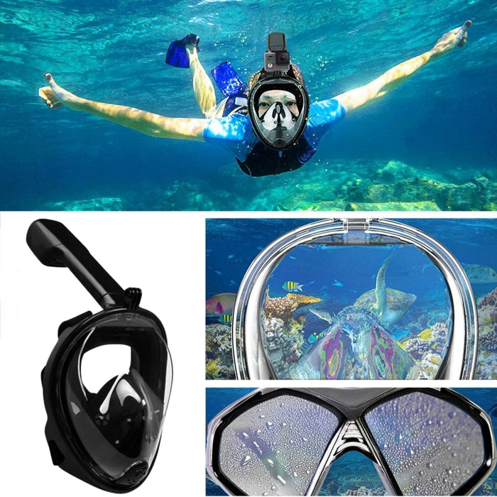 Máscara Full Face Antiniebla Buceo Snorkel Con Soporte Gopro Color Negro L Xl